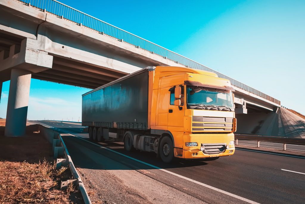 International shipment, trucks and cars driving on the road.Logistics and warehousing